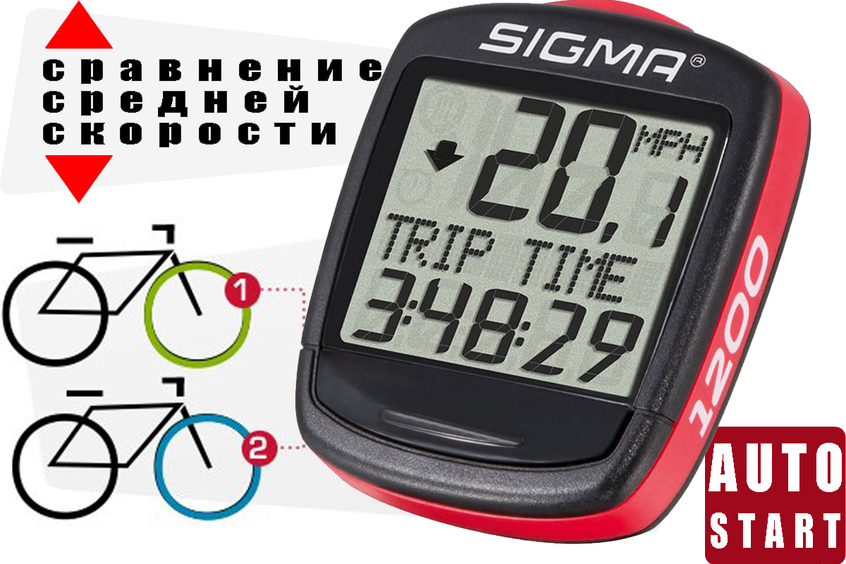 Проводной велокомпьютер Sigma BC 1200 BASELINE – самый многофункциональный, из линейки Sigma BASELINE, имеющий 12 функций.