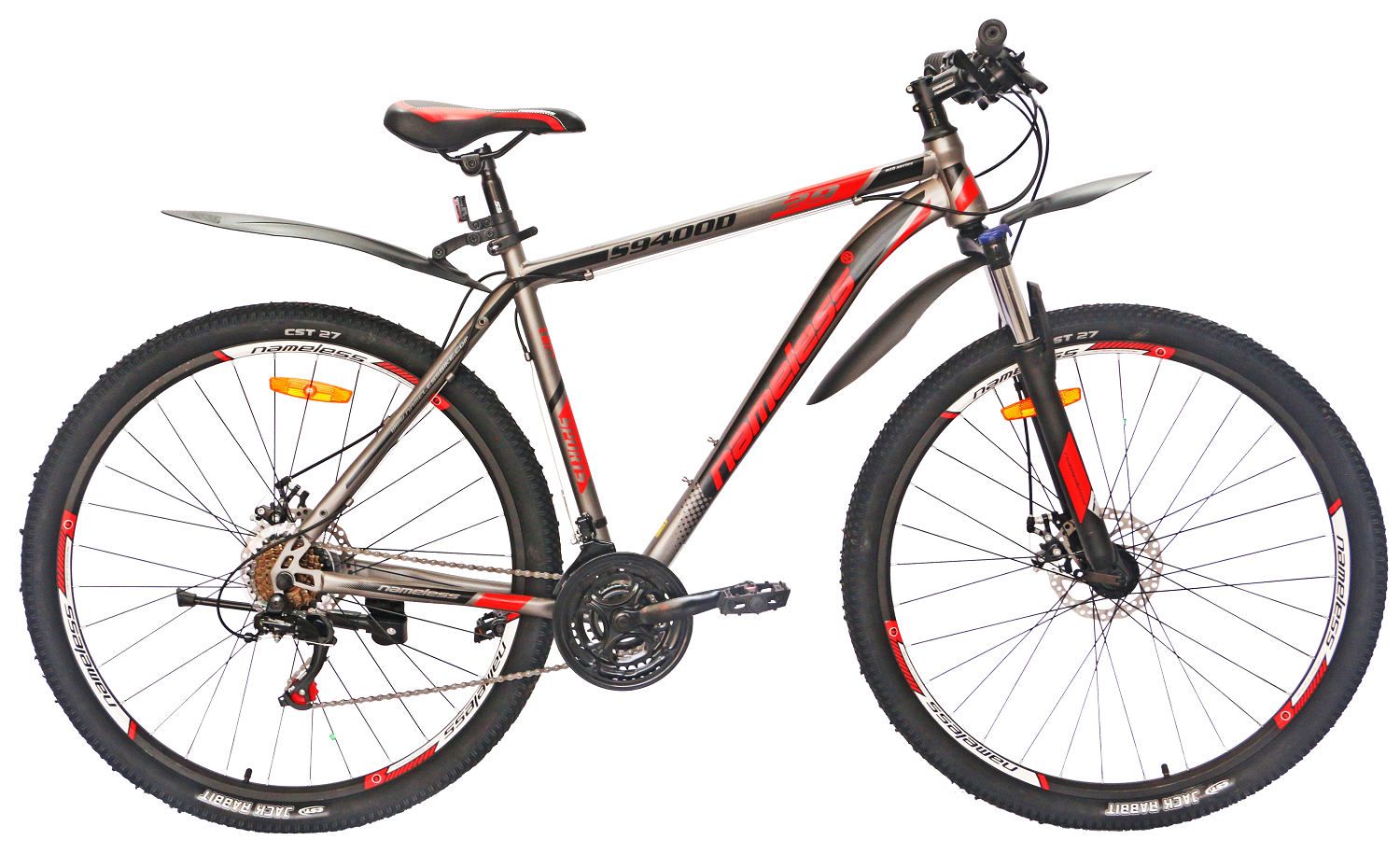 Найнеры можно назвать универсальным типом байков, так как в огромной коллекции найдутся подходящие варианты и для простых любителей велопрогулок, и для профессионалов. Велосипед Nameless S9400D 29 (2021) — образец идеального сочетания хороших скоростных характеристик и максимального комфорта. Выпущен в 2021 году. Колеса 29" дюймов отлично переносят высокие нагрузки. Дисковые механические тормоза хорошо слушаются, что гарантирует успешное выполнение любых маневров. Модель не боится сложных трасс и бездорожья.