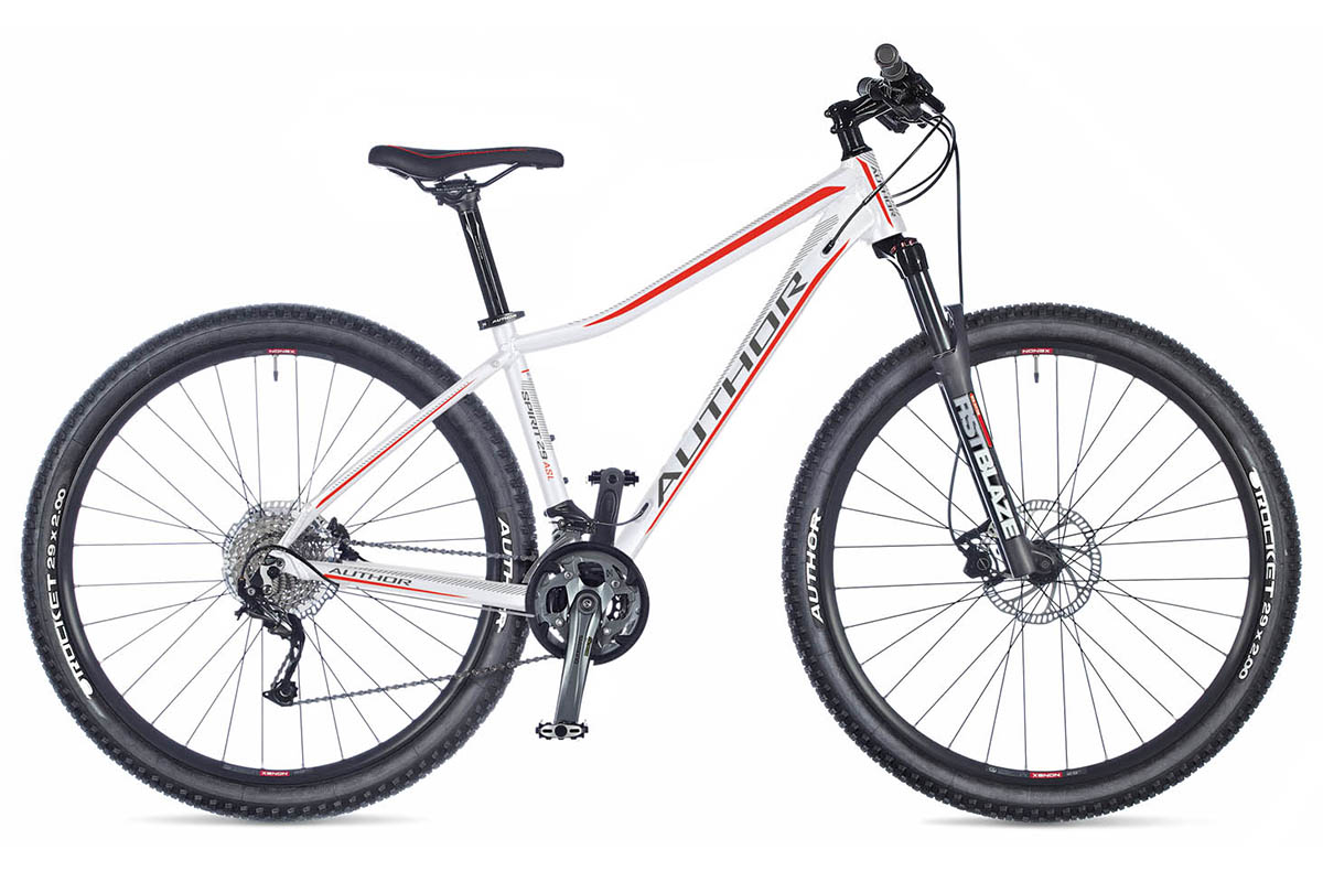 Год 2019 Возможные размеры 16", 18" Модель рамы hydroformed alloy 6061 29" (ASL) Задний амортизатор - Рулевая колонка AUTHOR Integrated 1.5" tapered Ведущие звезды SHIMANO M4000 40-30-22 teeth 170 / 175 mm cranks Каретка SHIMANO ES300 Octalink cartridge Вилка RST Blaze 29 TnL oil, lock out (100 mm) Передний переключатель SHIMANO Alivio (34.9) Задний переключатель SHIMANO Alivio Манетки SHIMANO Alivio (27) Кассета SHIMANO HG400-9 11-34 (9) Цепь KMC Z9 Втулки QUANDO Disc 32 holes Тормоза TEKTRO Auriga disc hydraulic (7" rotors) Тормозные ручки TEKTRO Auriga WS Обода AUTHOR Xenon 29 32 holes Спицы black steel Покрышки AUTHOR Speed Master 29" x 2.00" Педали AUTHOR alloy Руль AUTHOR Flatbar 9° 660 / 680 mm Грипсы AUTHOR GripLock foam Вынос AUTHOR alloy Подседельный штырь AUTHOR alloy (31.6) Седло AUTHOR Fenix Скоростей 27 Вес 14.1 kg -